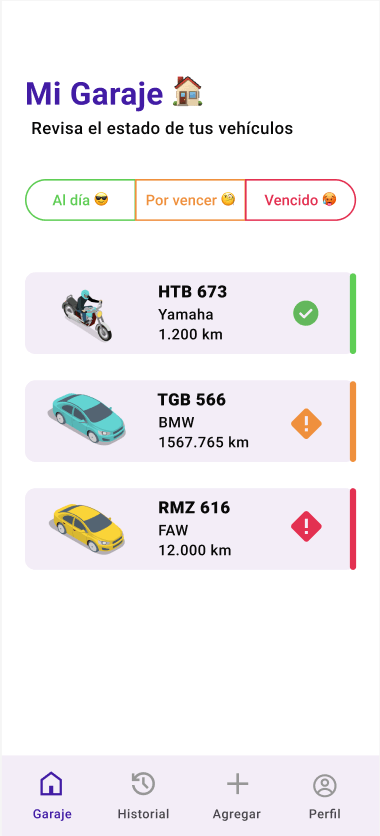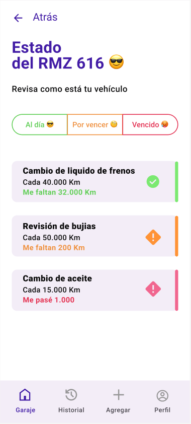 Te brinda consejos de mantenimiento según el vehículo que registres, para que no te vuelvas a varar y que mantengas tu vehículo 5:5 🏎
